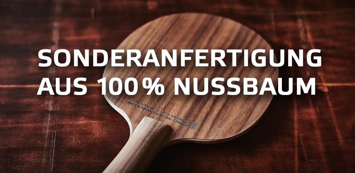 Da er aber einen geraden Griff spielt und mit seiner Griffform, einer Kombi aus G4A und G3A, sehr happy ist, hat er angefragt, ob wir ihm auch ein Tischtennis-Holz bauen können, das zu 100% aus Nussbaum besteht.